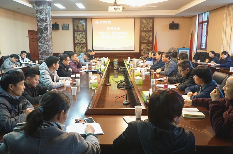 11月14日下午,学校机关党委在行政楼411会议室召开支部书记、委员全体会议暨党建工作业务培训。机关党委全体支部书记、委员参加会议。机关党委书记吕玲主持会议,特别邀请体育科技学院纪委书记史连启作党建工作业务培训讲座。